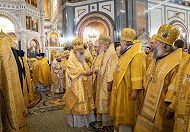 Богослужебные песнопения исполнили хор Храма Христа Спасителя (регент — И.Б. Толкачев) и хор духовенства Московской митрополии под управлением священника Сергия Голева.
